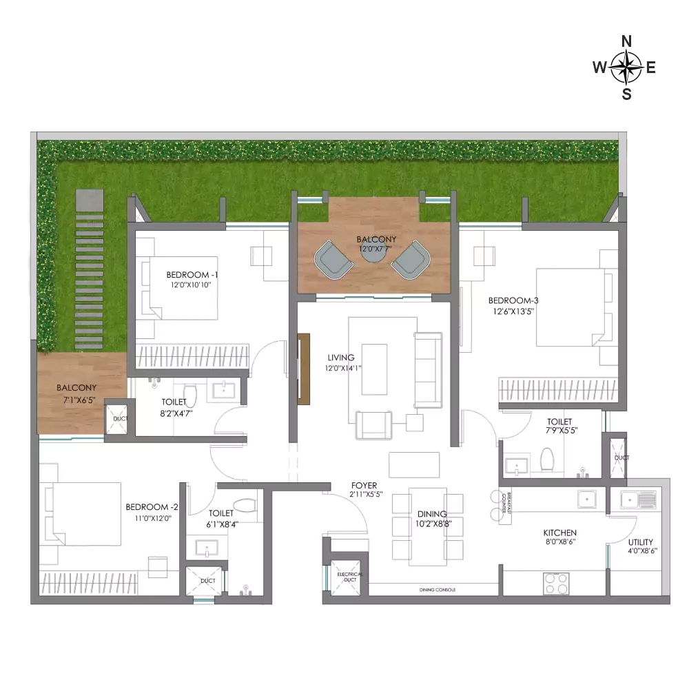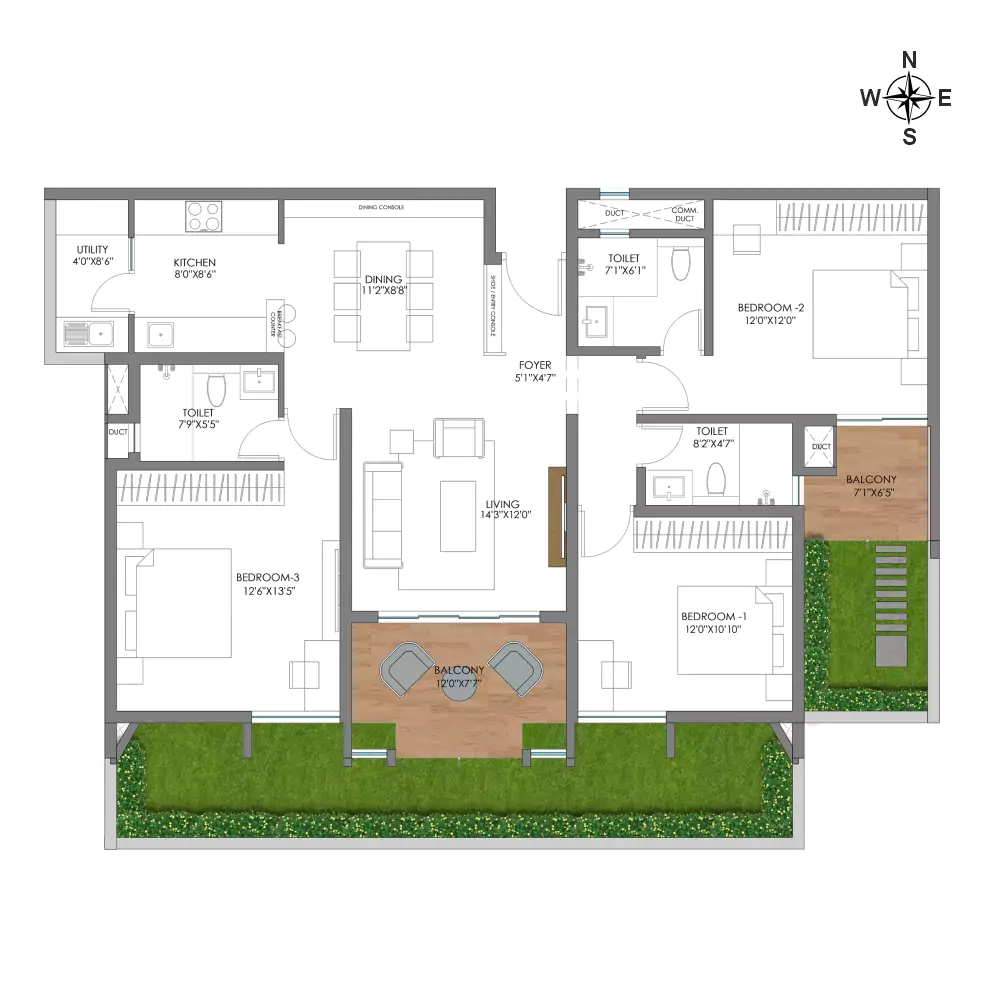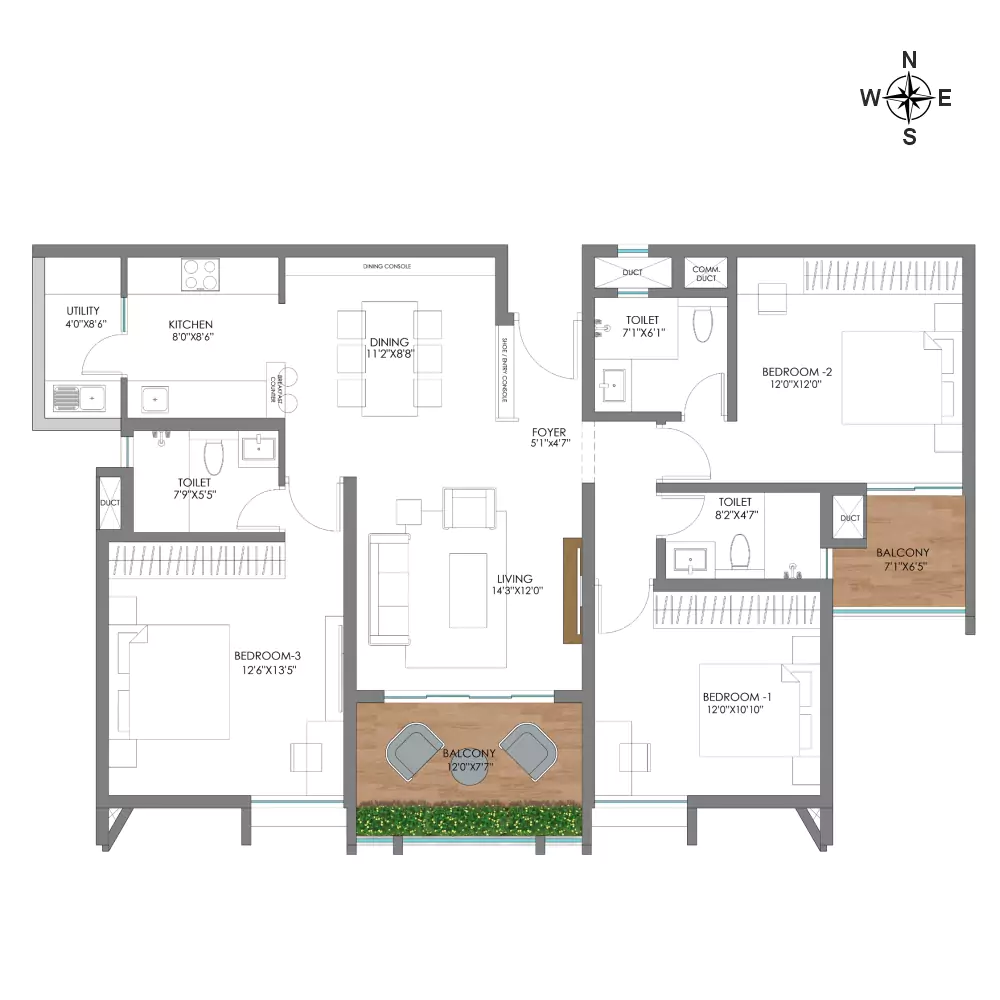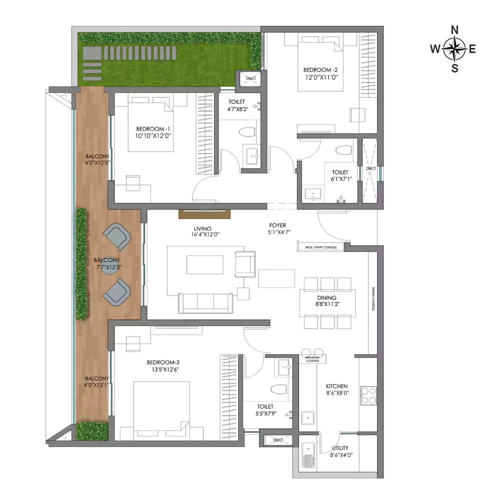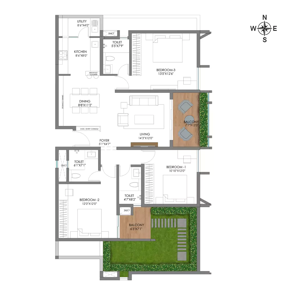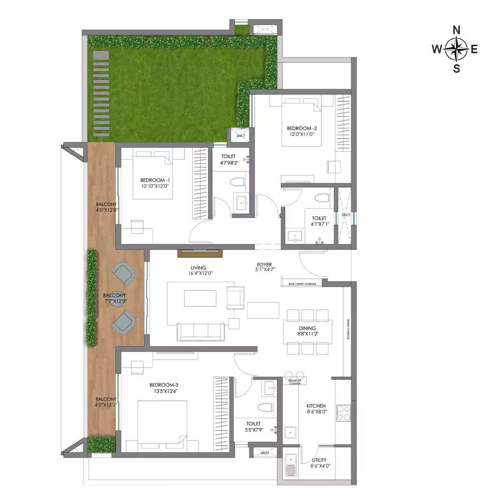 Large 3 BHKs with no shared walls.Prime Connectivity