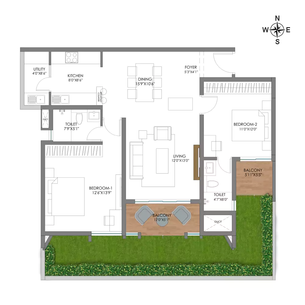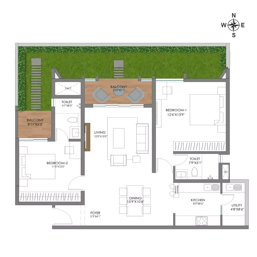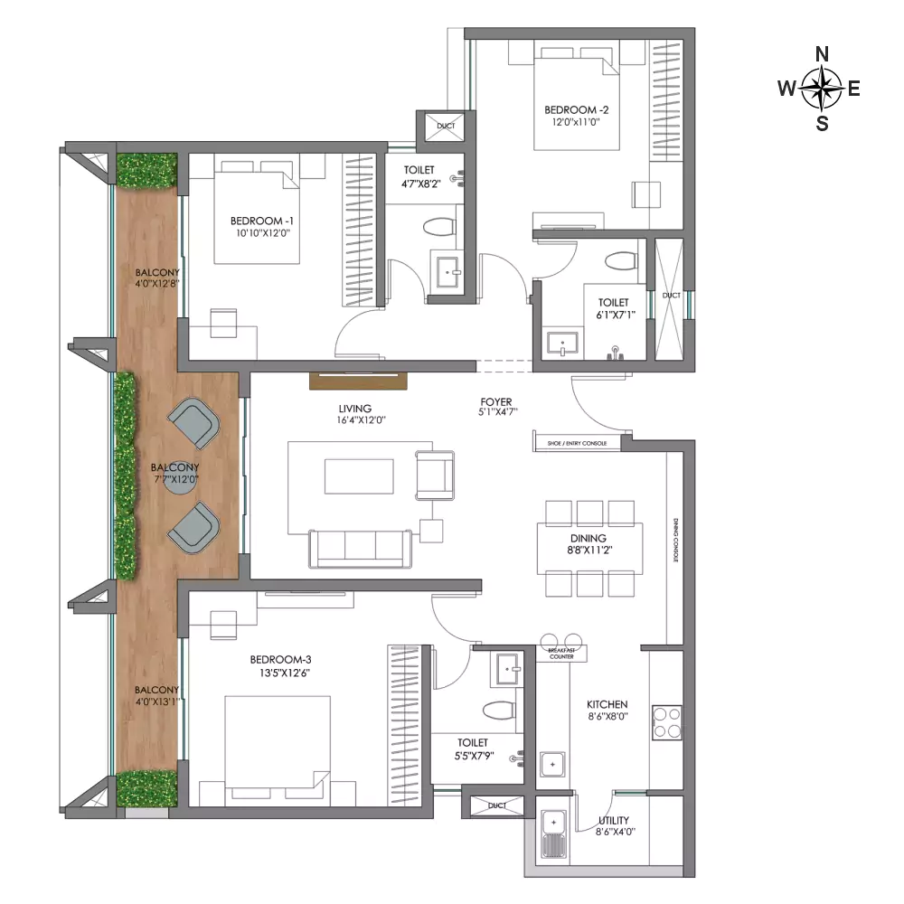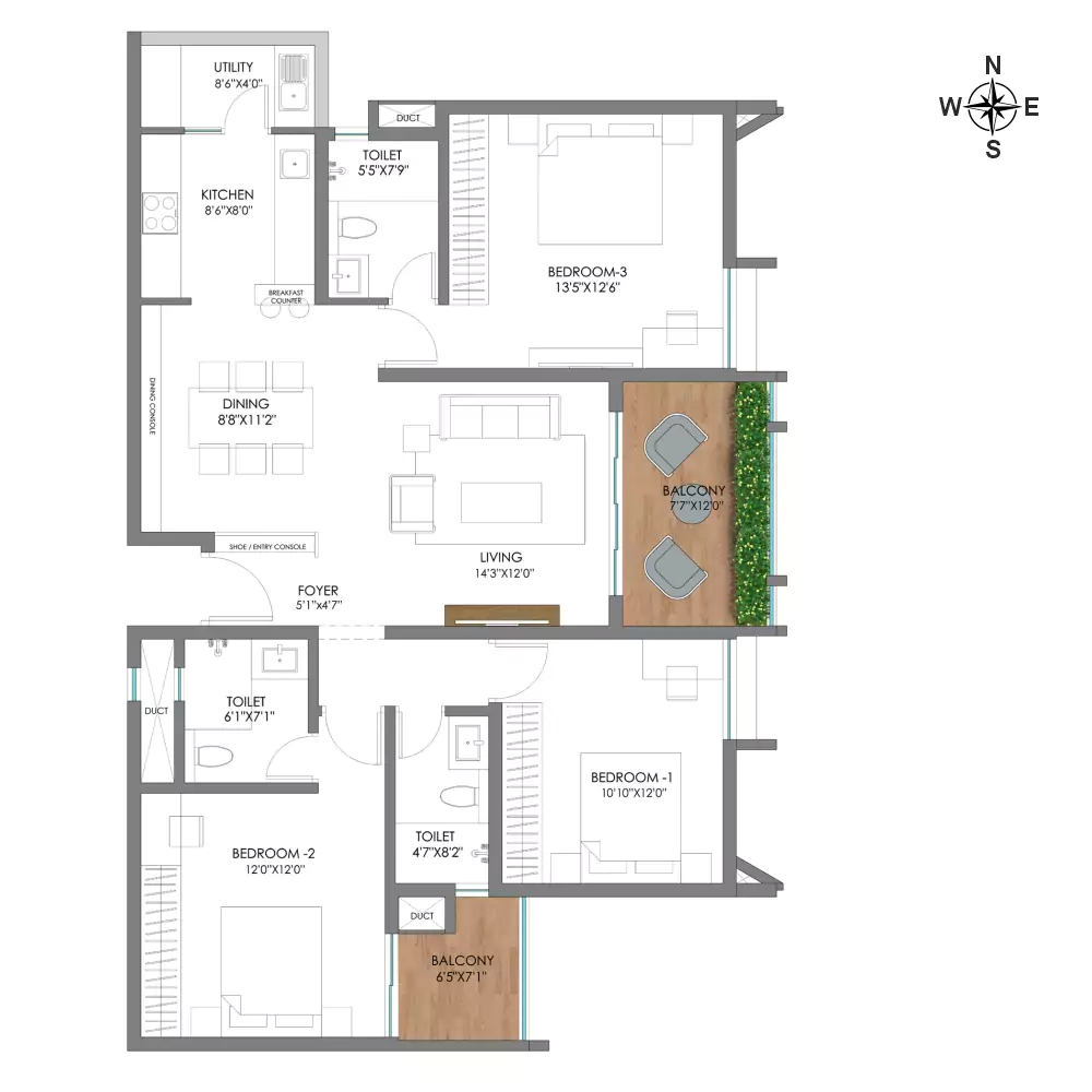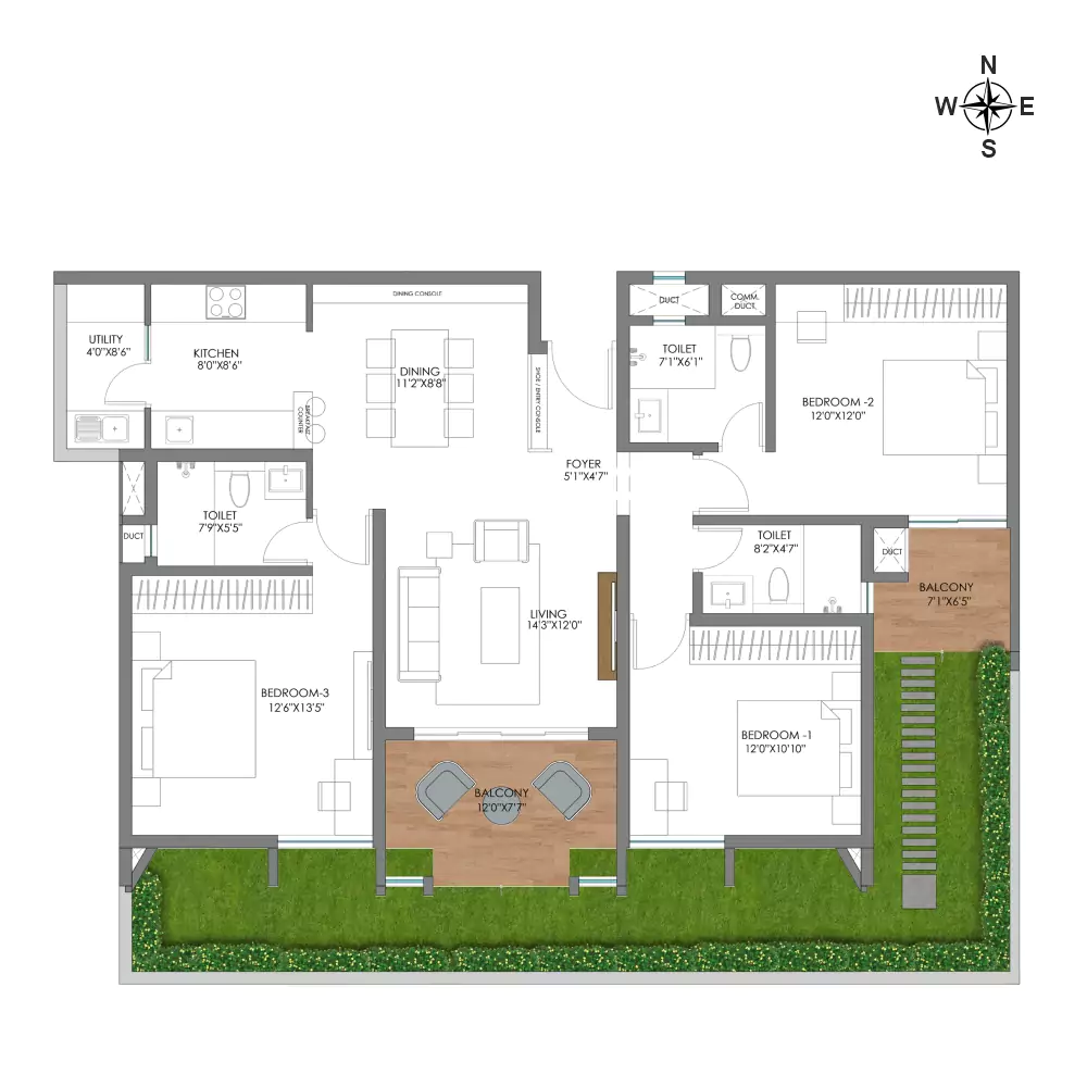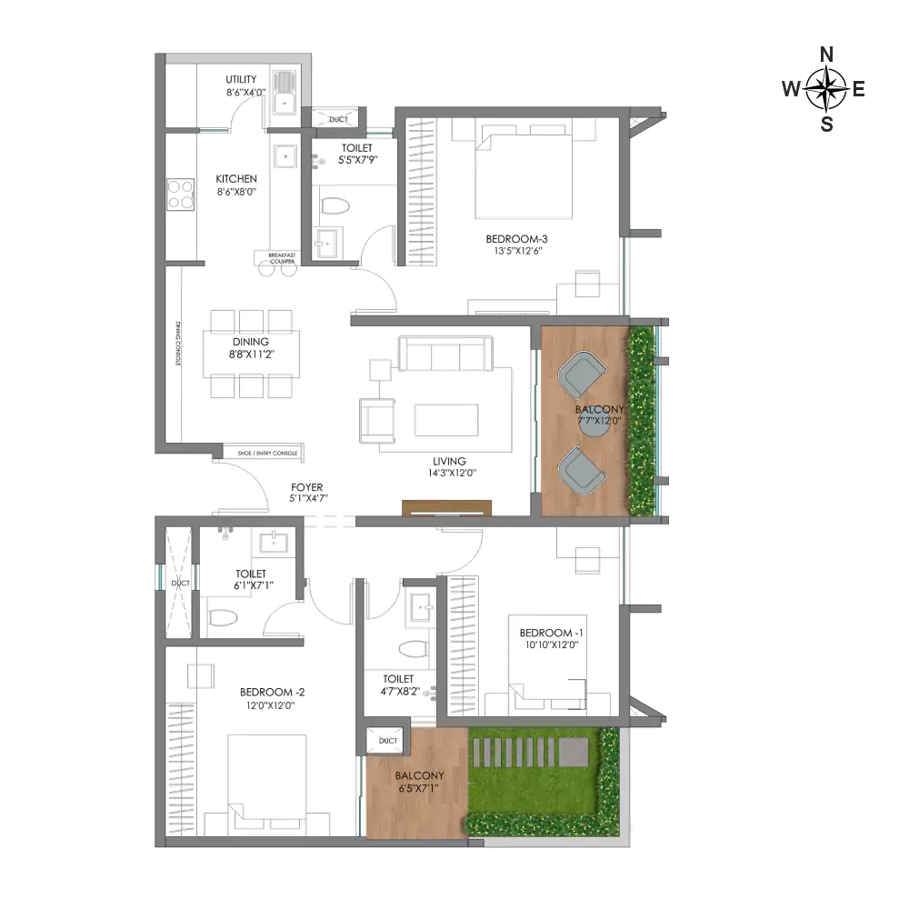 Large 3 BHKs with no shared walls.Prime Connectivity