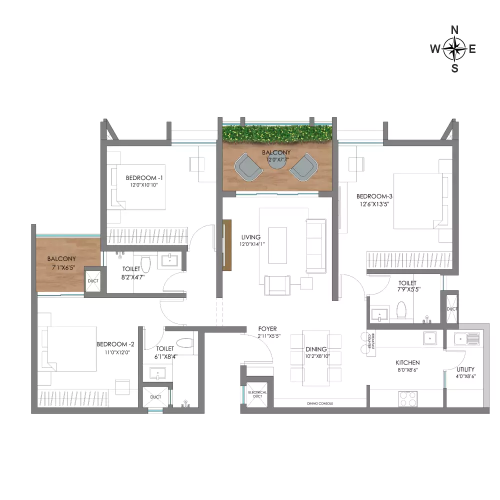 | 3 BHK | 1890 Sq.ft. | 1.29 Crore* | Enquire Now |